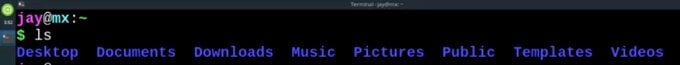 Look at the first character in the string. The d means directory. So, even if your Linux distro doesn’t use different colors, you will still know that a character string that begins with d is a directory.