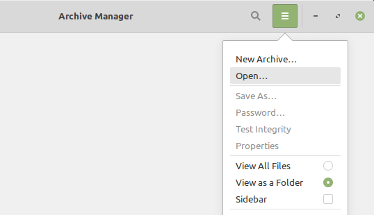 With P7Zip installed, open File Roller or Archive Manager and select Open to load a 7z file.