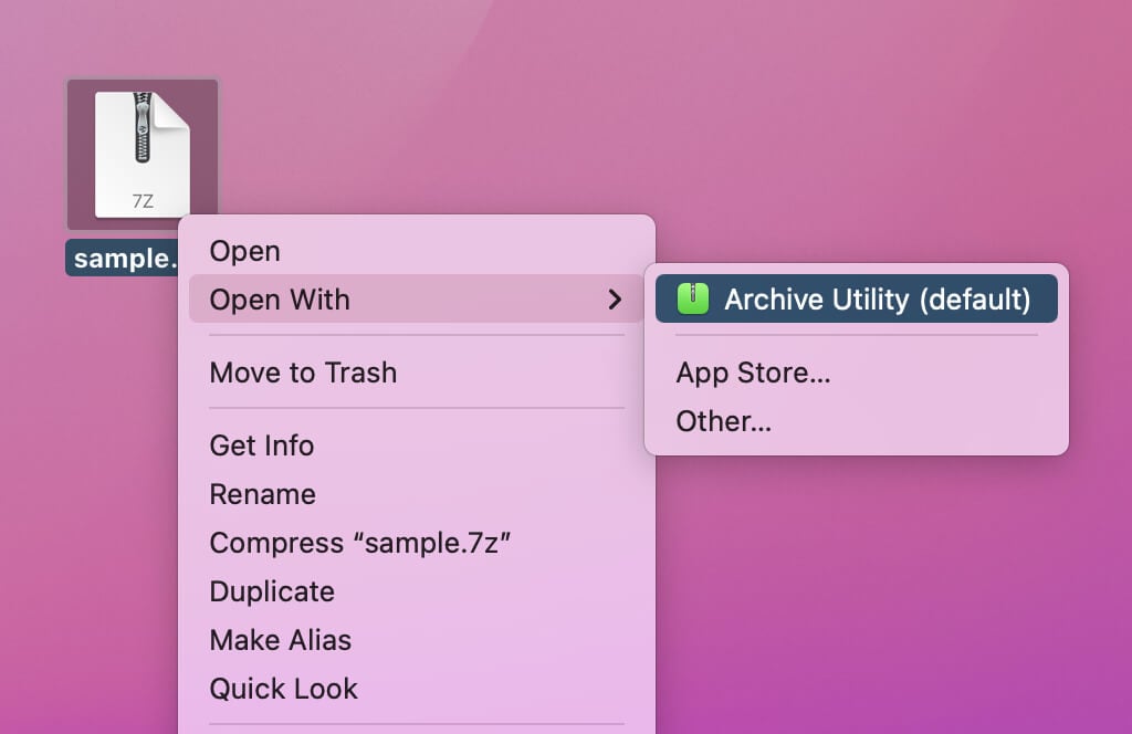 If your Mac runs a relatively recent version of macOS (such as Catalina, Big Sur, or Monterey), you can use the built-in Archive Utility to extract 7z files.