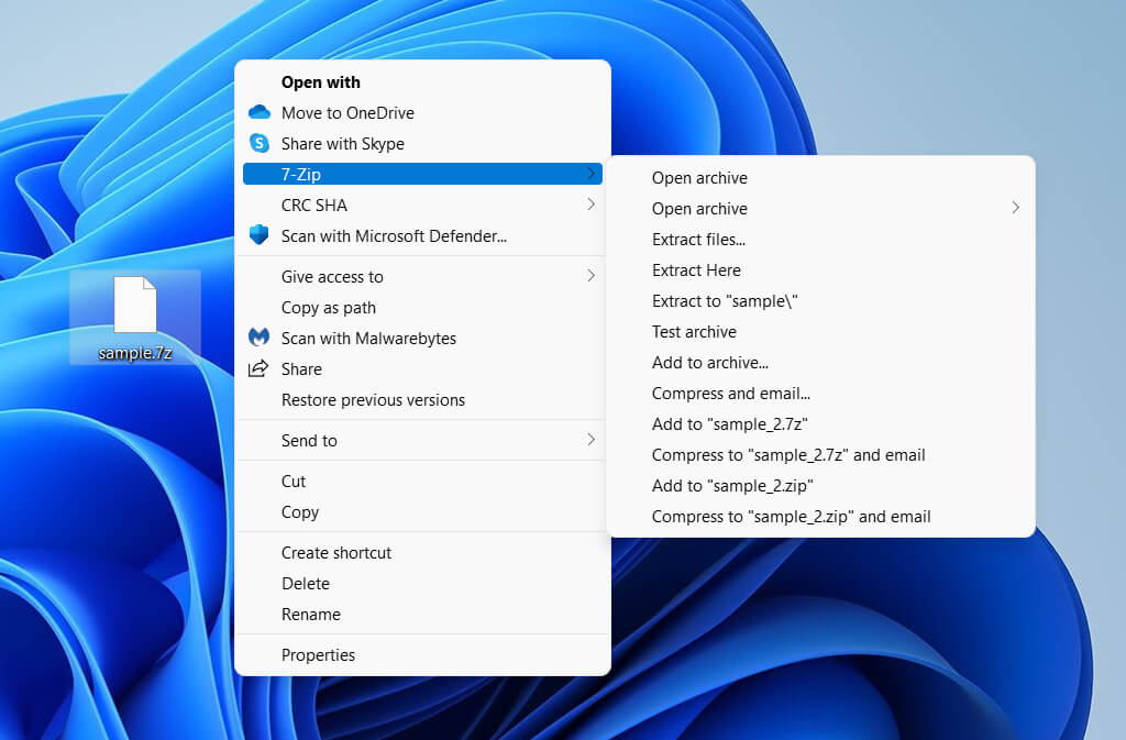 Start by downloading and installing 7-Zip from 7-Zip.org. The installer is completely free of adware, so don’t worry. Then, right-click any 7z file on your PC, and you’ll find a 7-Zip contextual menu option. If you use Windows 11, you must first select Show more options to reveal it.