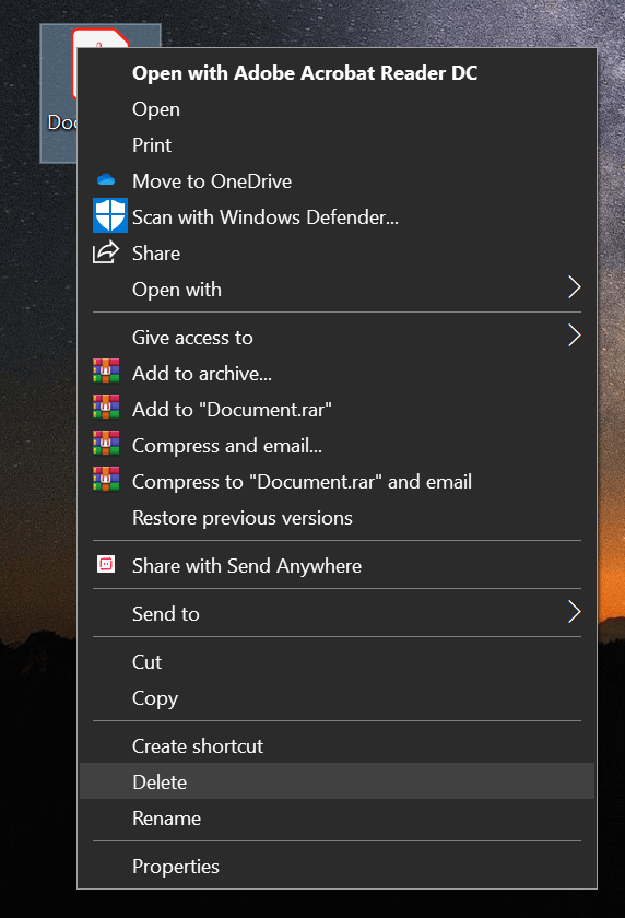 - When the file is fully closed, right-click on it and select Delete. The file will delete without throwing any errors on your screen.