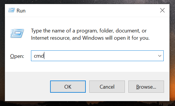 - Press the Windows + R keys at the same time, type in cmd, and hit Enter.