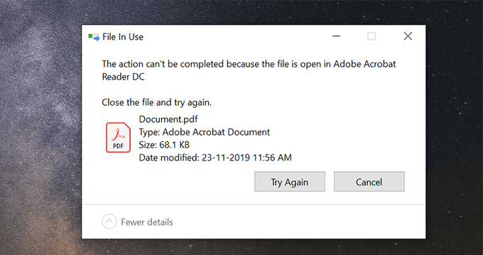 Sometimes while deleting a file on your Windows computer, you may come across an error that says “The action can’t be completed because the file is open in a program”. When this error pops-up, it means you’re dealing with a locked file and you can’t delete your file no matter what you do. Your PC will keep on throwing the same error on your screen letting you know the file is in use in some program.
