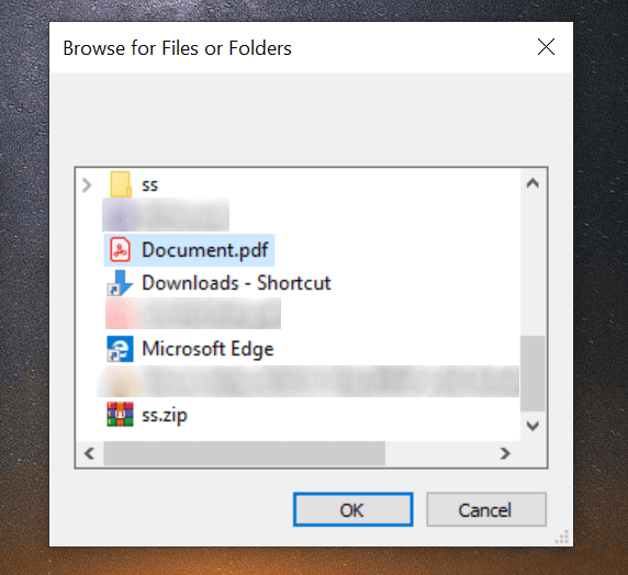 - It’ll ask you to select your file. Choose the file that you’re unable to delete and click on OK.
