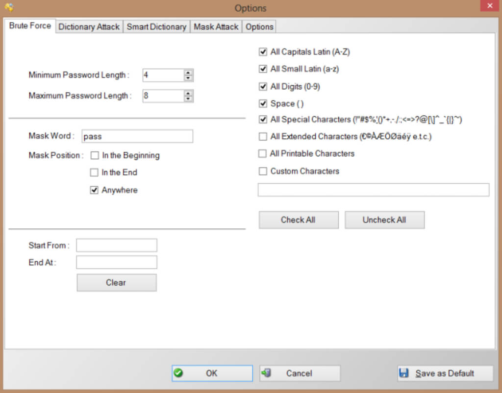 If you can’t seem to remember the right password, you can try using a RAR password cracker to access your files. One good example of such an app is RAR Password Cracker Expert. It’s a free app that you can program to use both brute force and a dictionary attack to try all your options at cracking the password. However, bear in mind that cracking a password-protected RAR file is a difficult task and might take a lot of time.