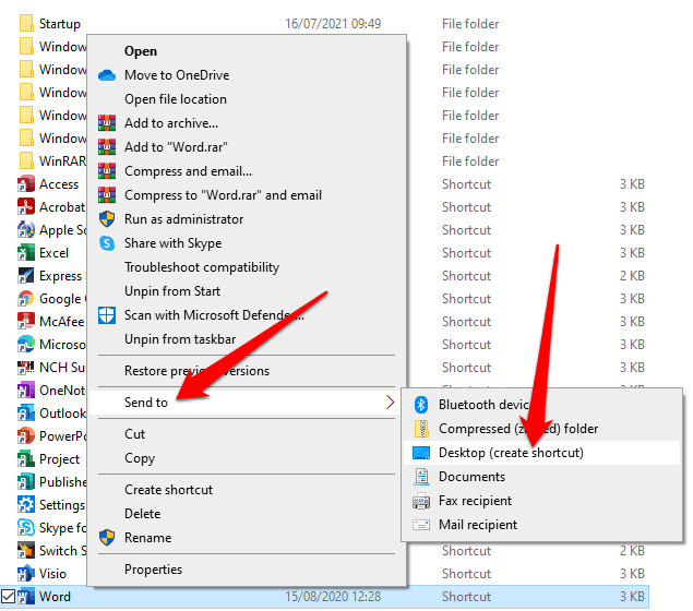 - Right-click on the application file in the Start menu or taskbar and select Open file location > Send to > Desktop**(create shortcut)**.