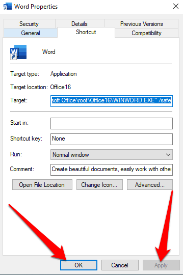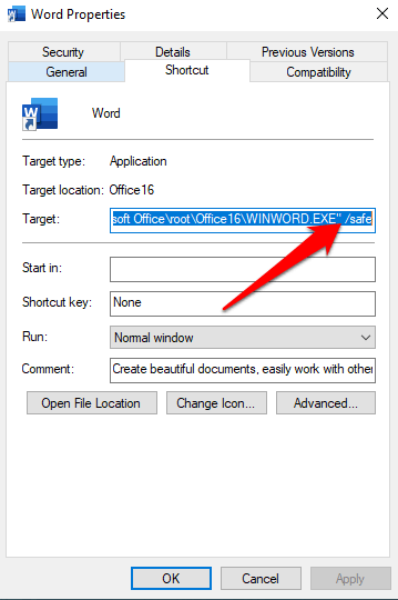 **Open Word or Excel in Safe Mode Using a Desktop Shortcut**