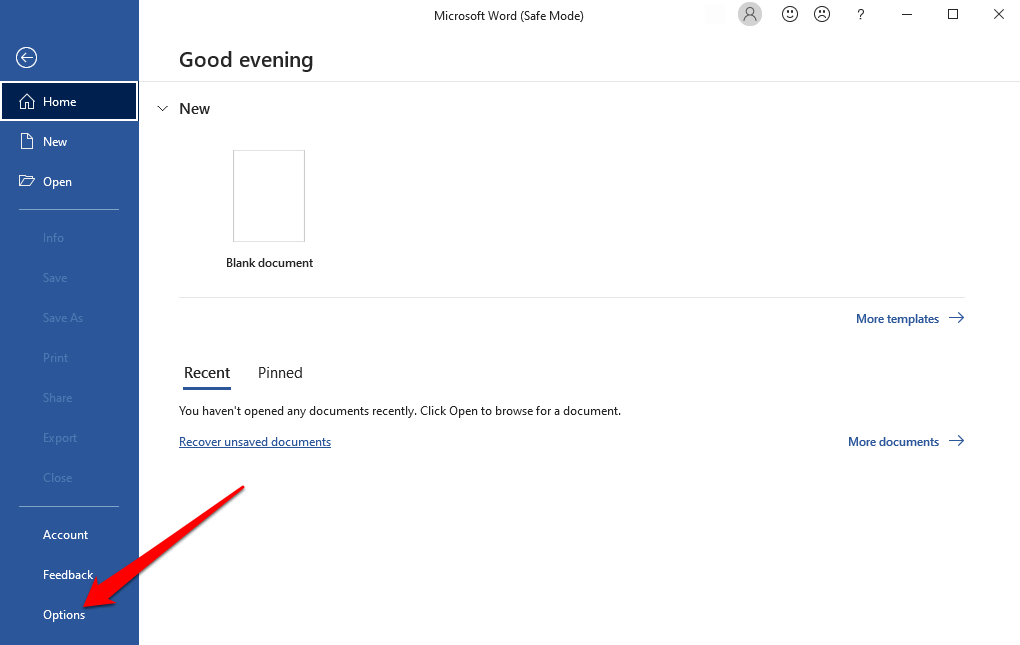 - This will open Word using the same Run command argument and start the application in safe mode.