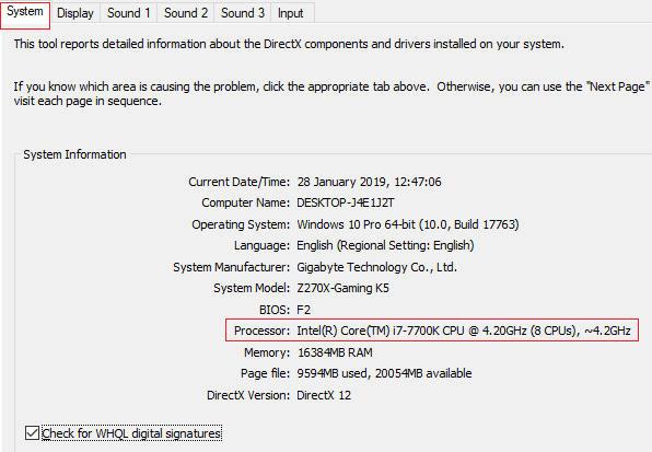 - On the system tab, look for processor.