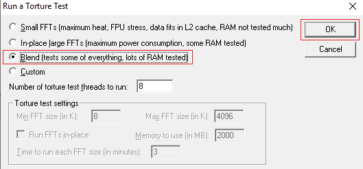 **Choose ‘blend’ **and then click **OK. **Your PC will now be put into a stress test. All other programs may run slowly during this test, so you should close everything down for the meantime.