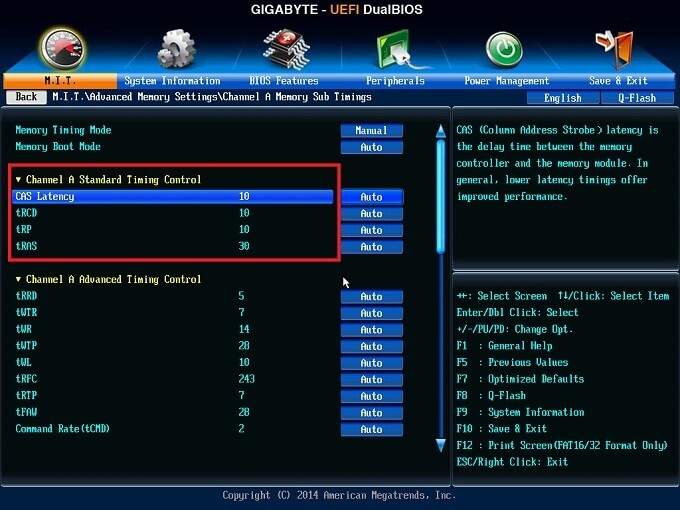 You want these timings to be as low as possible without causing stability or performance problems. The thing is, the higher you push your frequency, the higher these numbers may have to be in order to make everything work. This can lead to a situation where faster speeds but looser timing lead to an overall decrease in performance.
