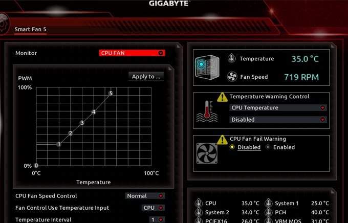 This is where the fan speed comes into play. After selecting Smart Fan 5 Settings at the bottom of the M.I.T tab, your screen should look like this:
