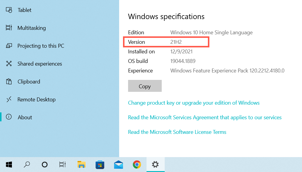- Check Version and note what you see next to it—e.g., 21H2.