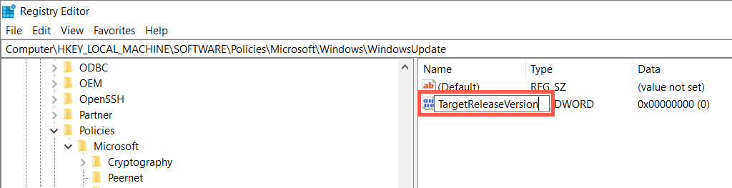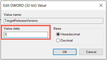 - Double-click the TargetReleaseVersionInfo string, enter your Windows 10 version into the Value data field and select OK.