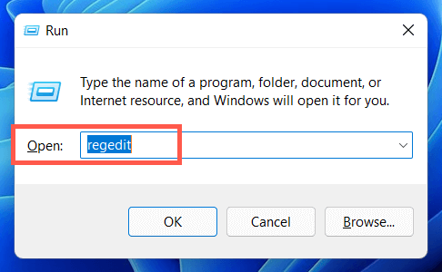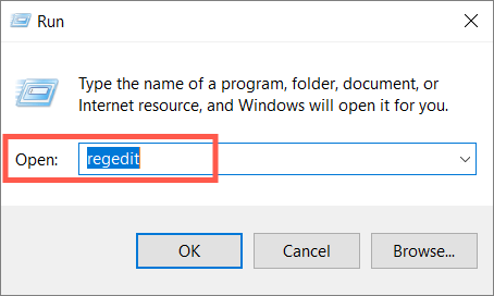 - Type regedit into a Run box and press Enter.