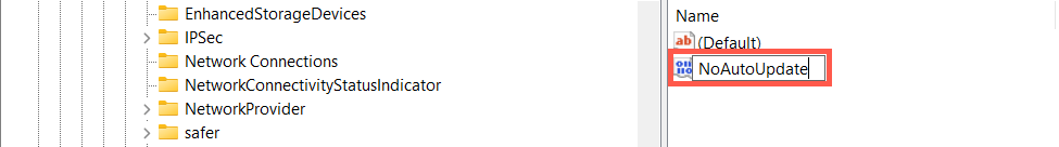 - Name the key as NoAutoUpdate.