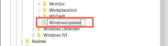 - Name the folder as WindowsUpdate.