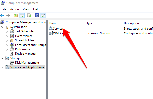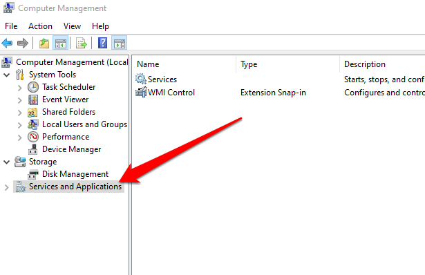 - Select **Services and Applications** in the console tree.