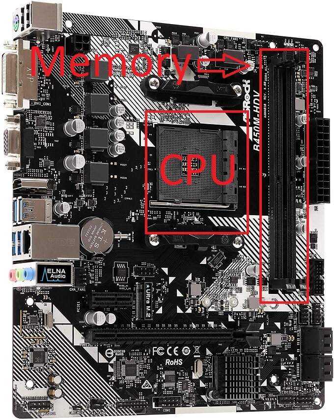 The suggested motherboard here is the ASRock B450M-HDV R4.0.