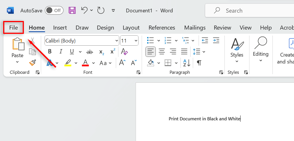 - * Open the Microsoft Word document you want to print in black and white.