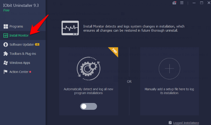 The free IObit Uninstaller version lacks an installation monitor so it can’t track new programs as they’re downloaded and/or installed, but you can get that in the Pro version.