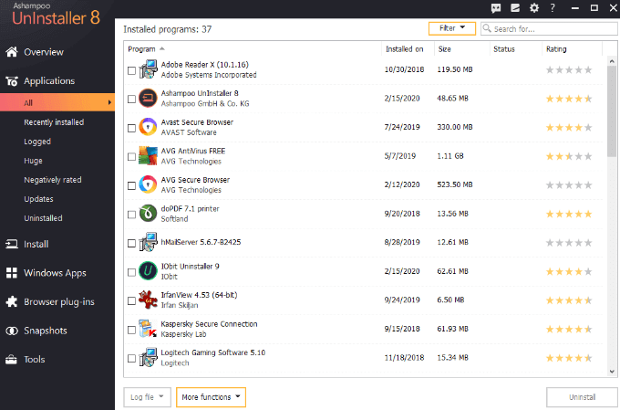 Ashampoo is a feature-rich uninstaller with Deep Cleaning technology that combines four different techniques to thoroughly uninstall programs on Windows 10.