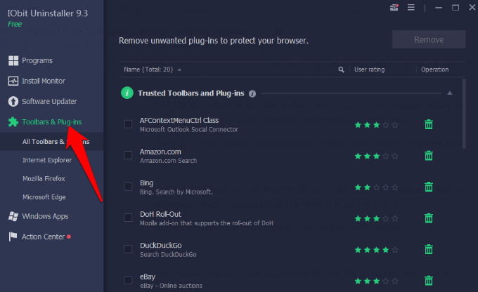 IObit can also remove plugins and toolbars, even those that were installed without your knowledge.