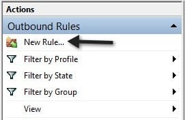 On the main screen, it gives you a quick overview of your firewall settings for the domain, private networks, and public networks. If your computer is not joined to a domain, you don’t have to worry about that profile. You can quickly see how inbound and outbound connections are managed by the firewall. By default, all outbound connections are allowed. If you want to block an outbound connection, click on Outbound Rules in the left-hand column.