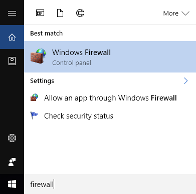 To get started, let’s talk about how to bring up the firewall settings in Windows 10. You can either open the Control Panel and open the firewall from there or you can click on Start and type in the word firewall.