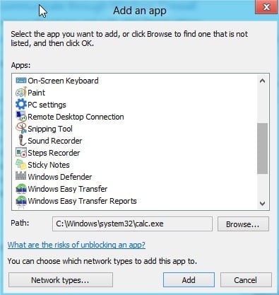 If the app is not listed, you can click on the Allow another app button and pick from a list or click the Browse button to find your program specifically. If the button is greyed out, click on Change settings first.