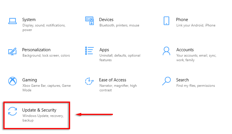- Click Update & Security.