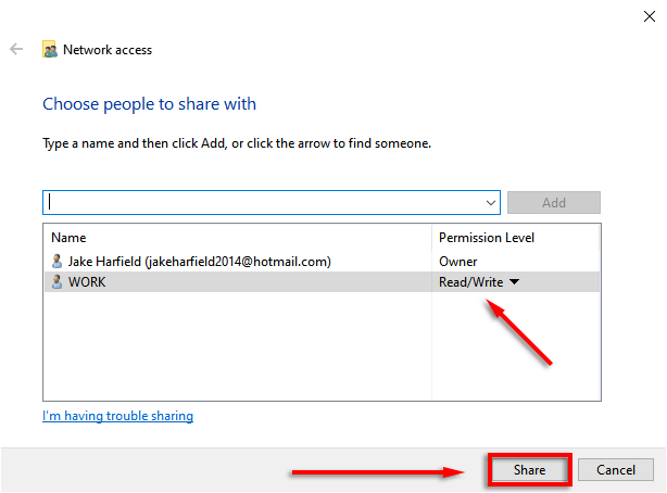 - For all users, click the dropdown menu under **Permission Level, **select **Read/Write**, and click **Share**.