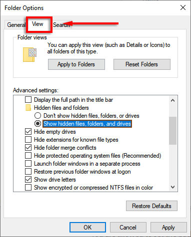 - In the new window, select the **View** tab.