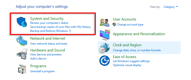 - Click **System and Security**.