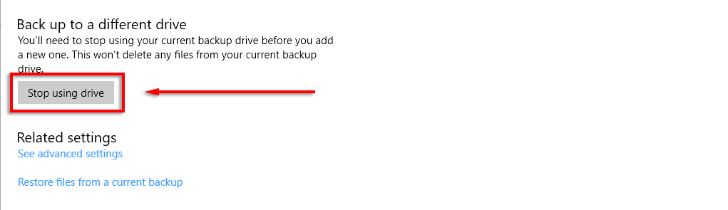 **Note: **Before going ahead with this step, make sure you create a manual backup of the File History backup, as this will remove it for good.