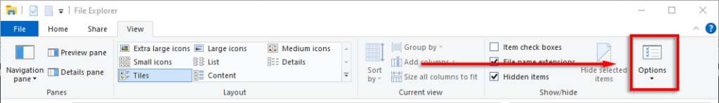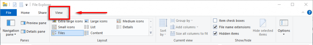 - Open File Explorer and select the **View **tab.