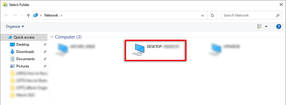 - Double-click the network device you created the folder on (your PC).