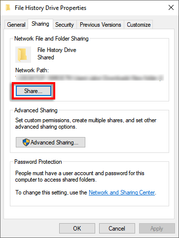 - In the **Sharing **tab, select **Share…**