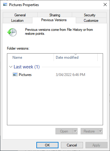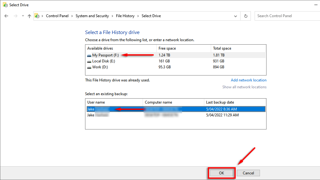 If it works, File History should now be fixed.