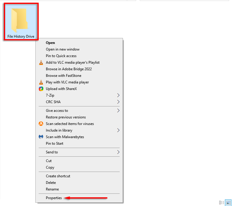 - Right-click on the folder and select Properties.