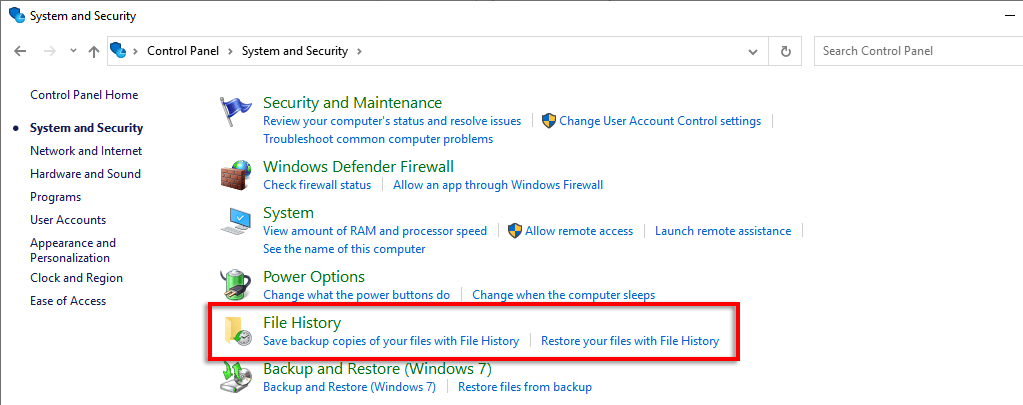 - Click **File History**.