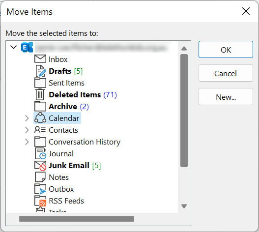 - Select the folder you would like to move the email or event to and select OK.