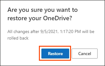 - To confirm “…you want to restore your OneDrive…”, select **Restore**.