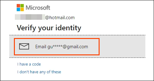 - A new window will open showing the verification method set by you when setting up OneDrive. In this example, it’s a recovery email address. The recovered email address will be obscured with some asterisks. Select the **Email **option.
