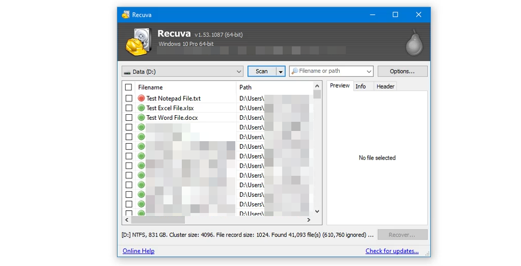 You’re likely familiar with Recuva’s sibling CCleaner. Like CCleaner, Recuva has free and paid versions. It’s also the easiest app to use among the file recovery apps we tested. There’s also a portable Recuva option that can be run from a USB flash drive, so Recuva doesn’t need to be installed on your PC.