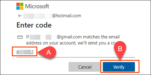 - Check your email for the verification code and: * Enter it in the new **Enter code** window * Select **Verify**
