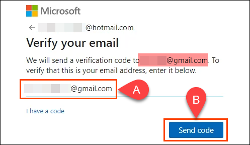 - OneDrive will then require you to; * Enter the complete recovery email address * Select **Send code**. If it’s the correct recovery email address, a code will be sent to it.