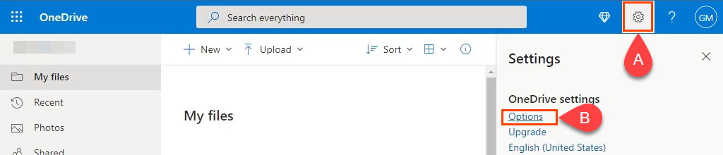 - Log in to OneDrive in a web browser and;