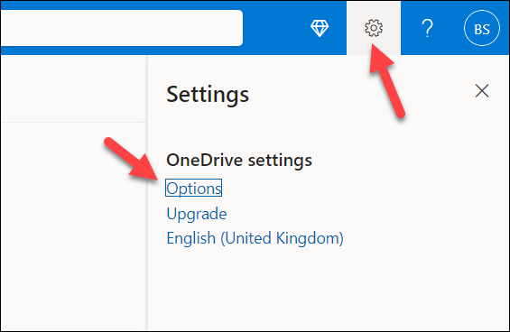 - Next, press the Settings icon in the top-right and select Options from the pop-up panel that opens.