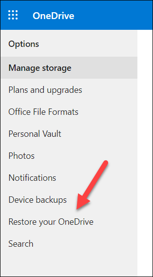 - In the Settings menu, select the Restore your OneDrive option on the left.